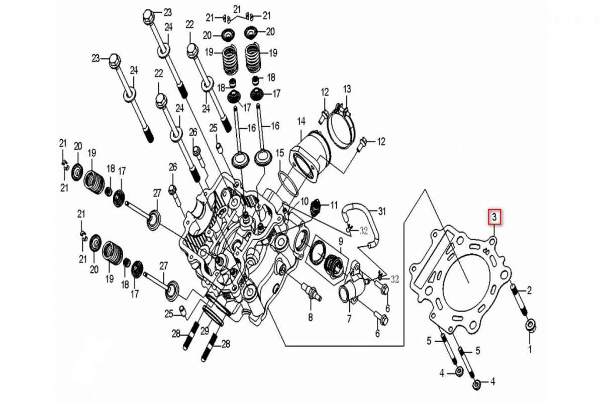 - Прокладка головки блока цилиндра CFMOTO 500 ТБ-0180-022200